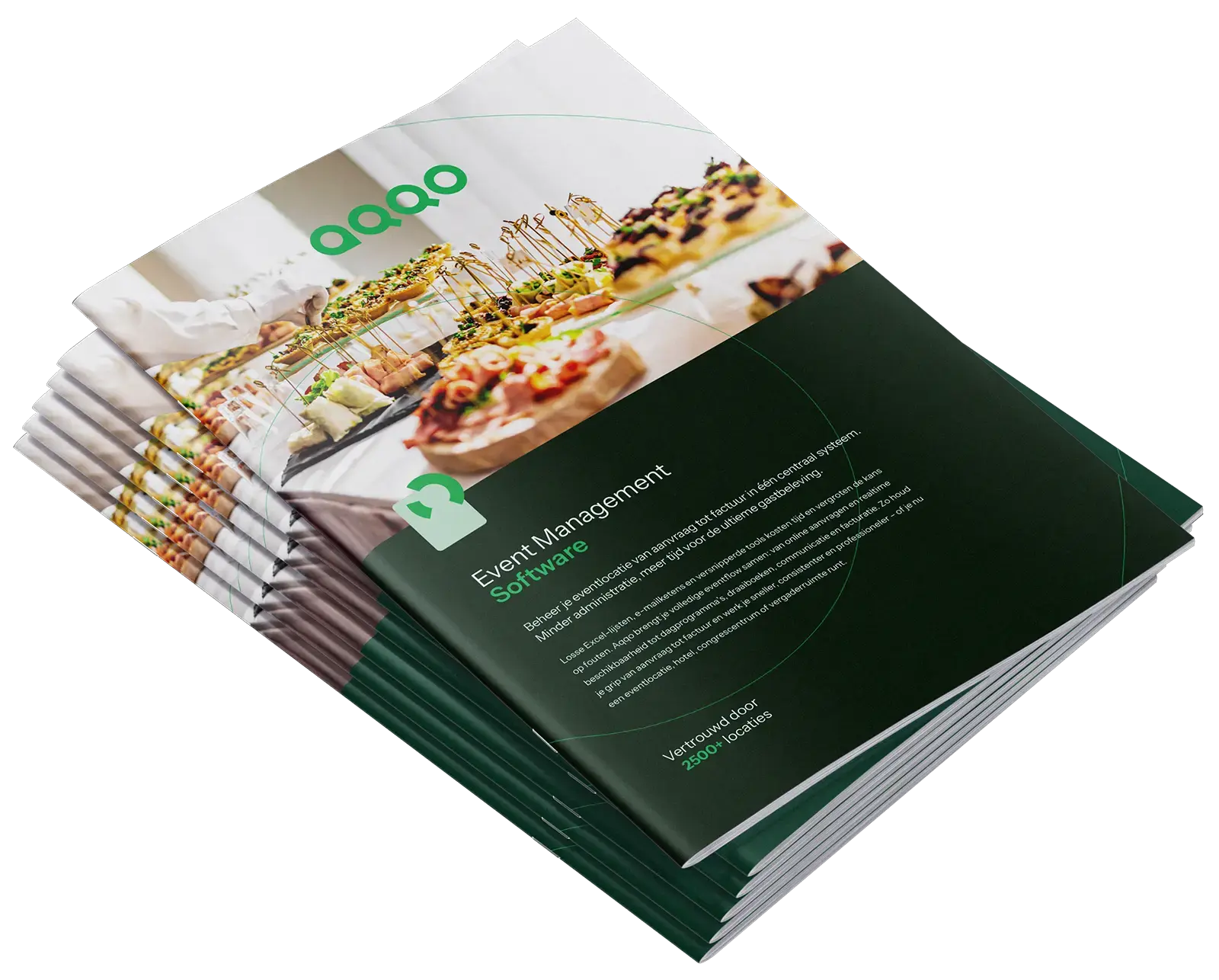 Aqqo is used by both independent event venues and organizations with multiple locations or brands. The platform supports complex event structures, such as multi-day programs and coordination between multiple rooms and teams, without losing the overview. You can easily add new brands or locations while central management and reporting are maintained. This keeps the event process manageable, even as your organization grows.